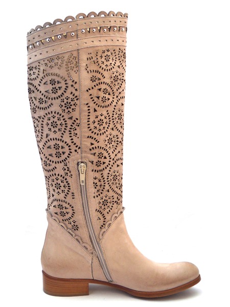 Ажурные летние сапоги из натуральной перфорированной замши бежевого цвета.