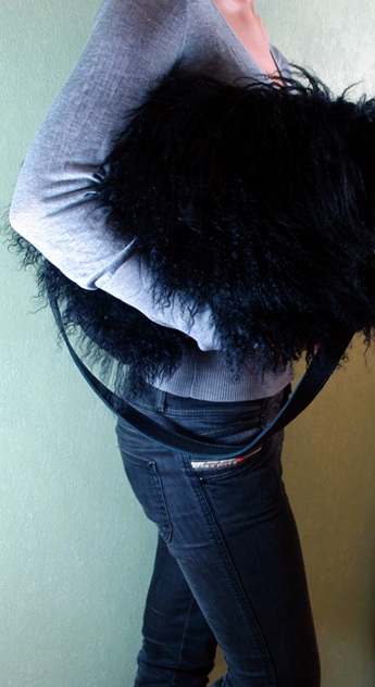 Черная сумка с мехом ламы