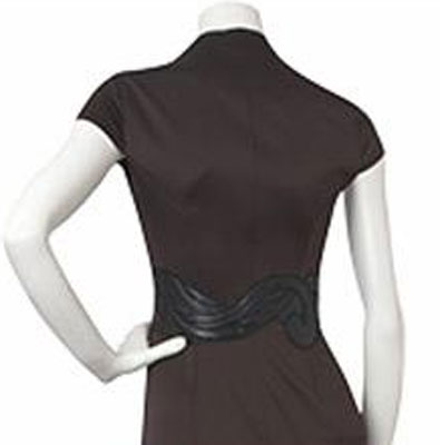 Маленькое чёрное платье всегда в моде. А если оно выполнено в стрейч-атласе шоколадного оттенка - это must-have! Эффектный декор в виде кожаной аппликации делает модель неординарной. Маленький рукавчик - само очарование, а роскошное декольте просто призвано покорять!
