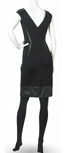 Вырез-лодочка, вытачки на талии и низ изделия обработаны атласной тканью-компаньоном. Простой приталенный силуэт эффектен, выполненный в чёрном варианте, он придаёт образу женственности и сексапильности.