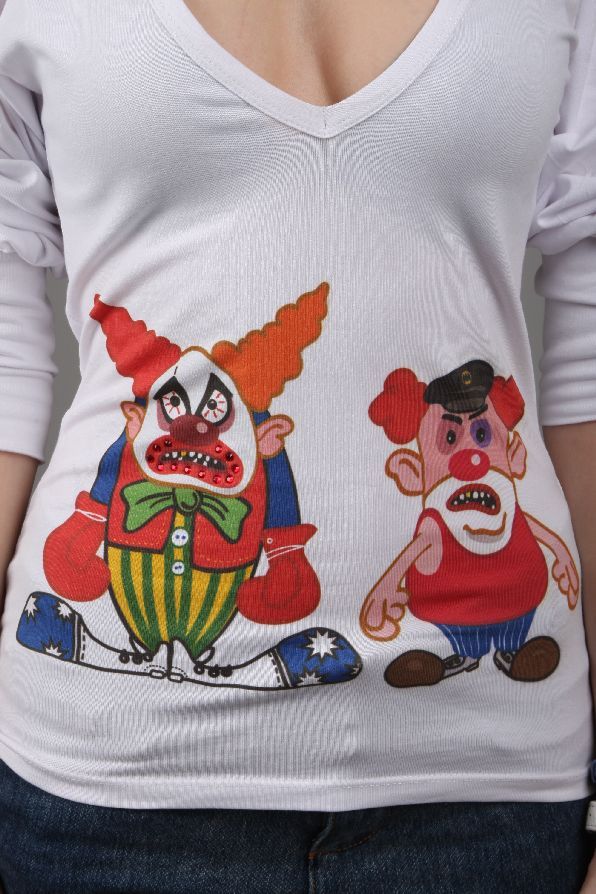 Два клоуна на футболке для девушек, предпочитающих больше
