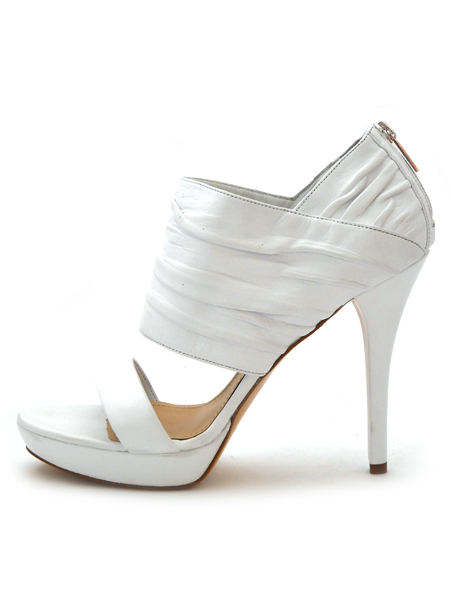 Шикарные туфли-ботильоны E'CLAT cезона лето 2010. Широкие полоски удобно фиксируют ногу, молния- сзади на пятке. Мыс открытый. Колодка на стандартную полноту. Изготовлены из натуральной телячьей кожи, подошва - нат. кожа, каблук - 11,5 см, платформа, обтянутая кожей, 2 см.