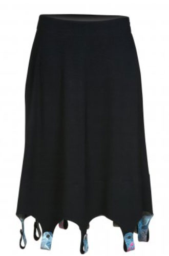 Юбки ниже колена всегда носили в себе скрытую сексуальность, а оригинальные широкие петли по каемке придают еще и игривости.