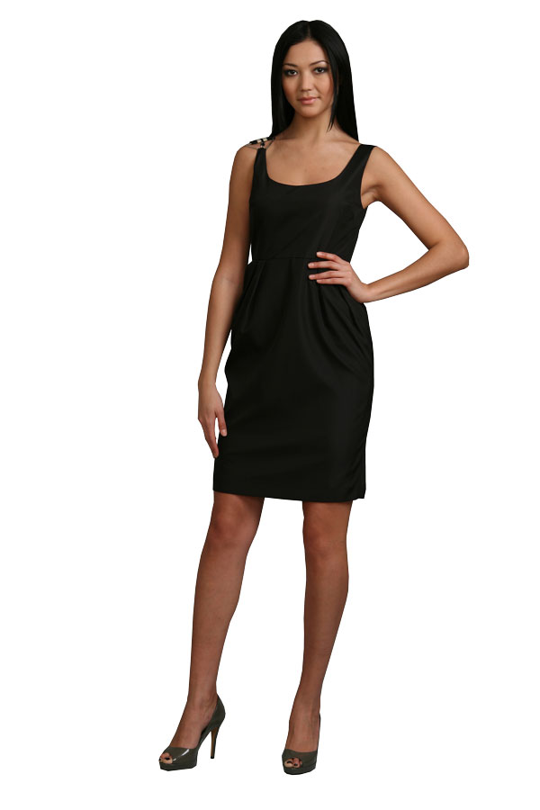 Платье-сарафан, лаконичное на первый взгляд, не так просто, как кажется: драпированые лиф и юбка, женственный, но не сковывающий движения силуэт и разнофактурные бретели, одна из которых цельнокроенная, а вторая, притачная, из декоративной тесьмы, - составляют единый стильный ансамбль, способный вписаться в гардероб любой современной горожанки.