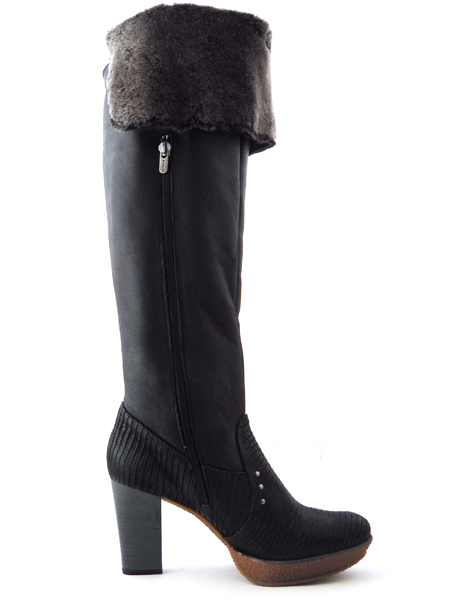 Внизу - кожа с отделкой под кожу рептилии, длинное голенище из мягкой кожи обтянет Вашу ножку и подчеркнет их сексуальность. Внутри - натуральный мех, который обернет ножки лаской и нежностью тепла и комфорта. Женственные, стильные и изящные, эти ботфорты станут незаменимыми в холодное время года.