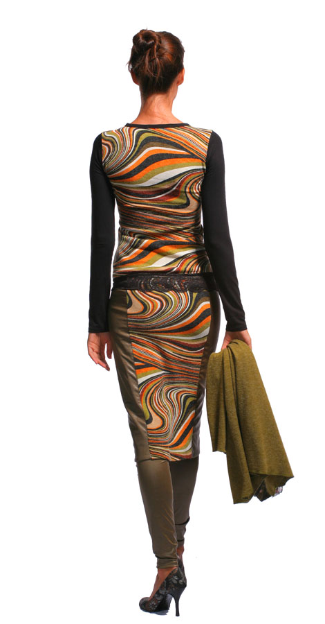 Прекрасная оливковая юбка-карандаш из вискозного трикотажа с принтом. Великолепно подойдет для работы, выхода в свет или для вечерних прогулок. Отлично будет сочетаться с топом, блузкой или джемпером.