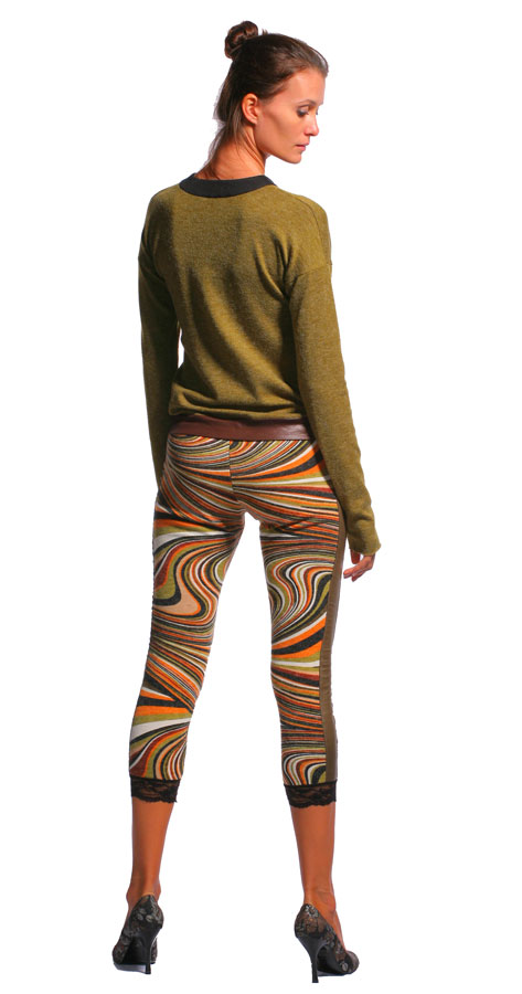 Эти очаровательные капри из новой коллекции Homo Virtuality сезона осень-зима 2010/11 созданы талантливыми дизайнерами специально для настоящих модниц. Прекрасно садятся по фигуре и подчеркивают все достоинства бесконечно длинных ног. Низ изделия обрамляет кружево. Что делает эти капри несколько кокетливыми. А оригинальный принт очень украшает.