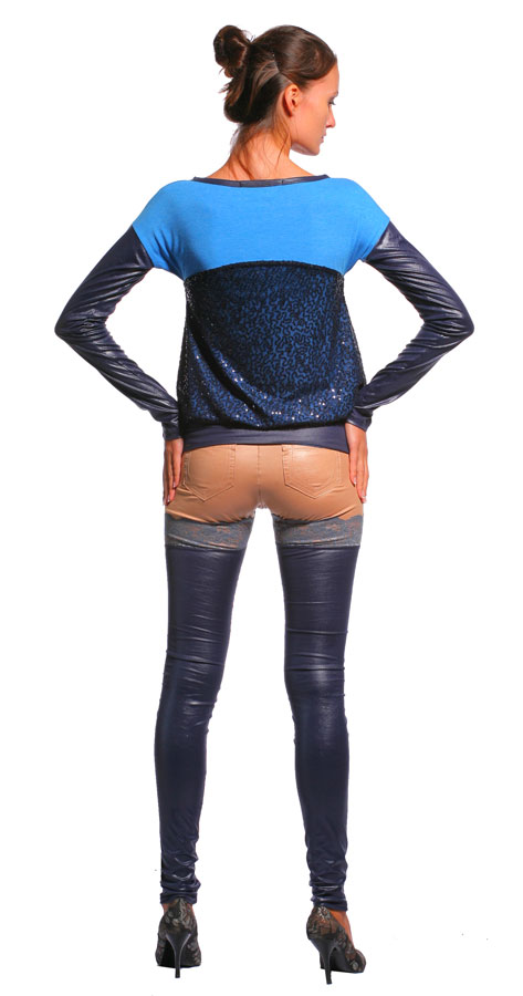 Выполнены из трикотажа с эффектом кожи в двух цветах – темно-синем и бежевом. Прекрасно ложатся по фигуре, с достоинством подчеркивая всю бесконечную длину ваших прекрасных ног.