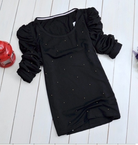 Эта футболочка, по всему полю которой разбросаны маленькие изящные бусины, скорее напоминает хорошенькую кофточку.