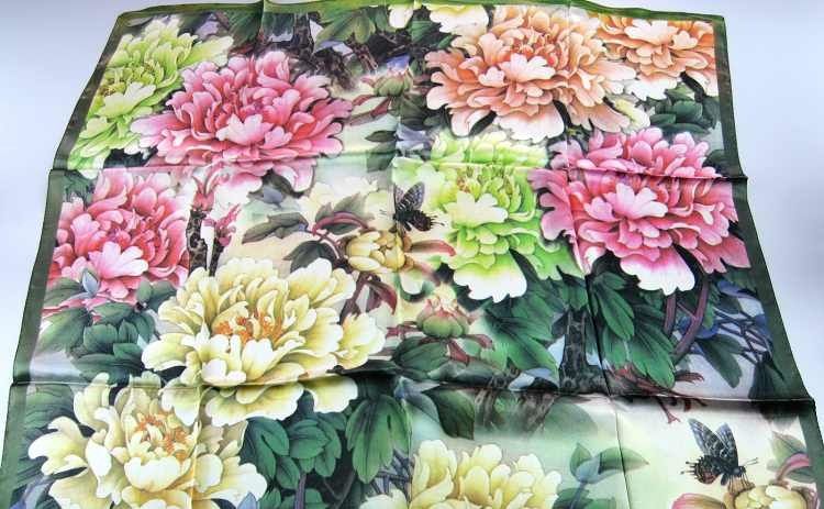 Оригинальный шелковый платок с цветочным рисунком. Краски сочные, красивые, шелк нежный и приятный.