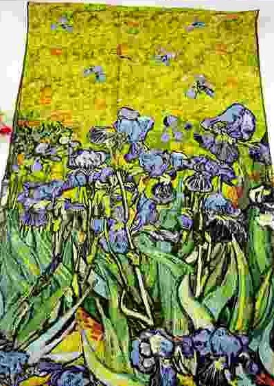 Красивый шарф из натурального шелка в сине-желтых тонах. Рисунок выполнен в стиле импрессионистов, что делает шарф весьма интересным.