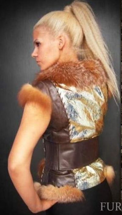 Широкий пояс выгодно подчеркивает талию, а воротник из чернобурой лисы дарит роскошь и комфорт. Даже холодной зимой вы не замерзните, надев этот прекрасный жилет.