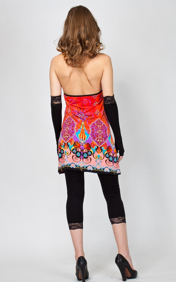 Смелость города берет – добавьте же ее в свой стиль. Настоящий бурлеск эмоций представлен в новом платье от известного творческого дуэта «Две сорванные башни»! Яркий принт по всей поверхности изделия как нельзя лучше отражает все актуальные тенденции этого сезона.