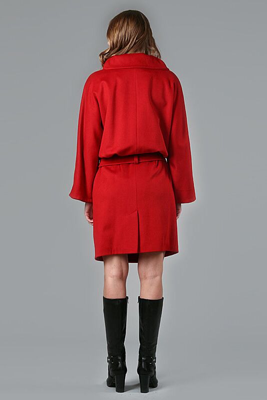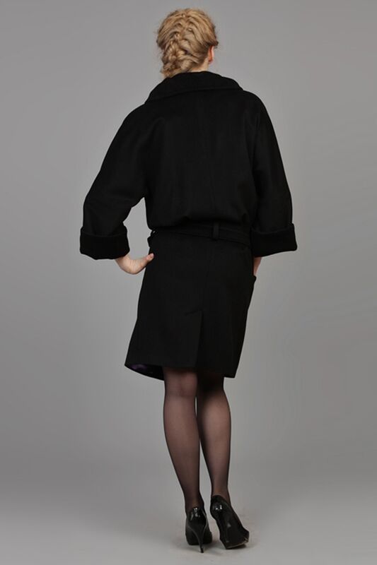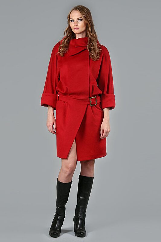 Пальто с напуском,с пряжкой на поясе и шикарным воротником.