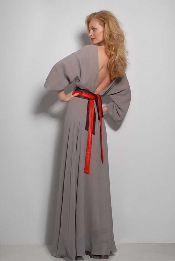 Загадочная многослойность струящихся тканей - основа этой неординарной модели. Благородный светло-серый оттенок делает платье изысканным, пробуждая чувственность и женское начало.