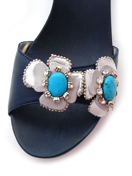 Модель выполнена из натуральной кожи самого высокого качества, благодаря этому вашим ножкам будет очень комфортно и удобно, а значит, вы не будите чувствовать усталость. Эти сабо идеально будут смотреться и с шортами и с платьем. Украшение в виде цветка с камнем бирюзового цвета придает сабо особый шарм и утонченность.