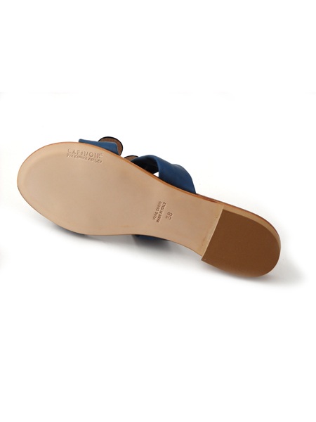 Очаровательные сандалии насыщенного синего цвета. Плоская подошва и небольшой каблучок позволят вам не чувствовать усталость целый день.