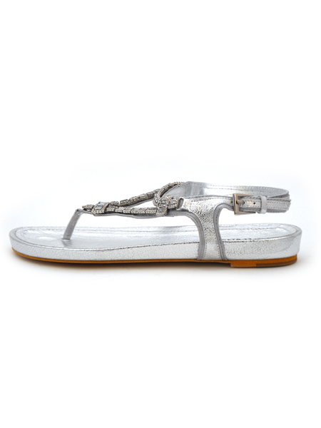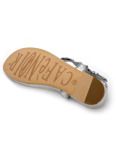 Невероятно красивые сандалии серебристого цвета. Они смотрятся очень стильно и мило, а благодаря плоской подошве и анатомической стельке вы не будете уставать, даже если отправитесь на пешую прогулку или экскурсию.