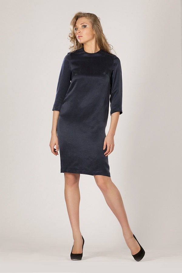 Базовое платье сдержанной длины миди прямого покроя с рукавами ¾ может стать вариантом для офиса либо для особенного случая.