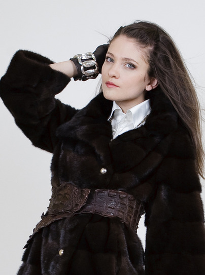 Шуба из норки коричневой группы, цвета Махагон, одного из самых темных и дорогих. Силуэт шубы – Кимоно, один из самых модных и актуальных в этом сезоне. Выполнена модель в поперечной раскладке меха. Высокое качество шубы отвечает всем европейским стандартам. А отделка из серебристых пуговиц-обманок придает изысканности и шика. Так же в этой шубе присутствует остромодное сочетание слегка укороченного рукава и воротника стойки. Эта шуба для тех, кто хотел бы подчеркнуть свою индивидуальность и отличный вкус.