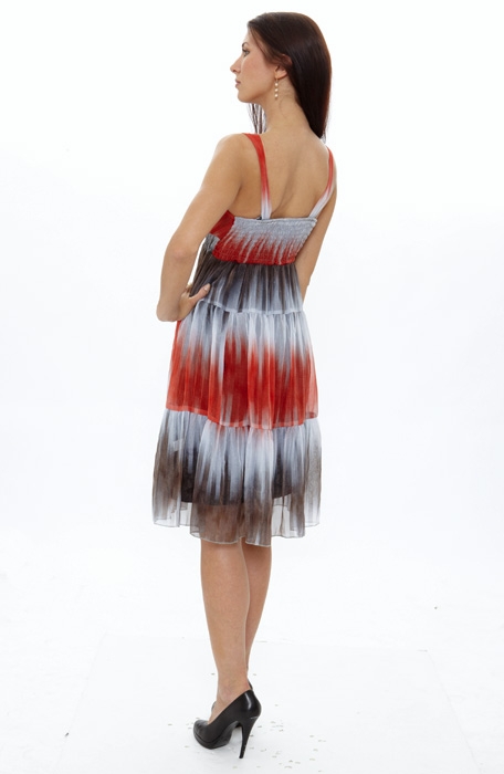 Сарафан создан из легчайшего шифона потрясающей черно-красной расцветки, которая делает его настоящим шедевром искусства моды.