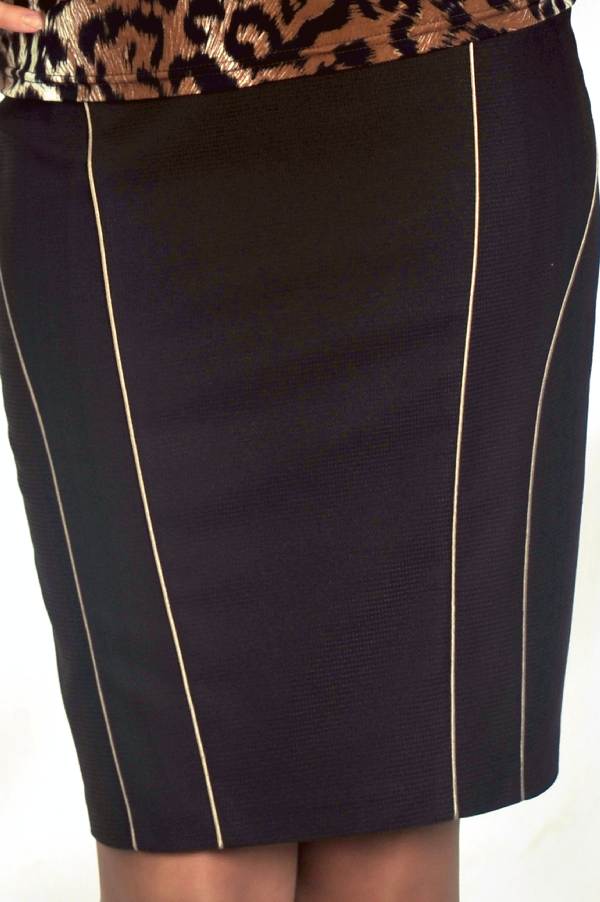 Юбка создана из костюмной ткани с добавлением эластана, что позволяет ей идеально облегать фигуру. Контрастные рельефные швы светлого цвета служат не только украшением этой модели, но и деталью, которая визуально сделает вас выше и стройнее.