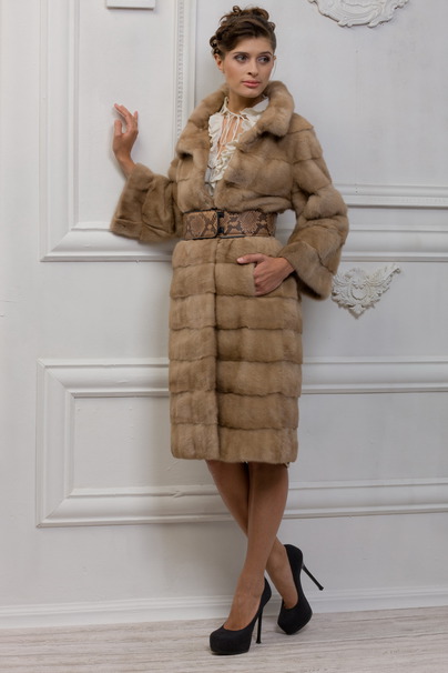 Роскошная шуба из меха норки цвета темный palomino. У этой модели немного укорочена длина рукава – 7/8, что придает удобство при носке. Изюминка этой шубы считается ассиметричный запАх и воротник. Подкладка очень практична при носке, так как состоит она из 100% шелка. Поперечная застежка, представленная в этой шубе, не позволяет проникнуть холодному воздуху. Длина шубы 105 см.