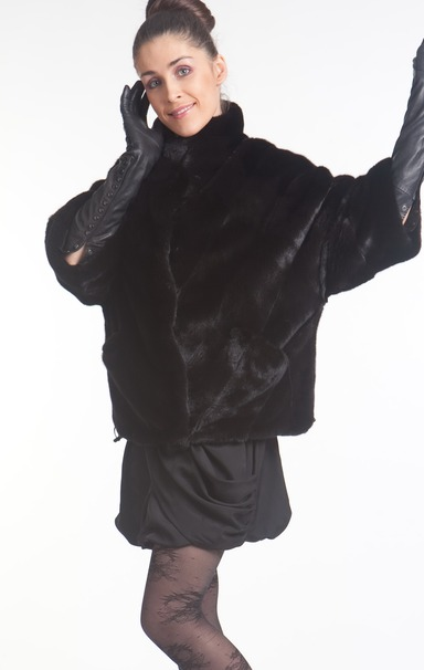 Эффектный и практичный полушубок из норки BlackGlama. Интересный и сложный крой модели придаст вашему телу изящность и легкость. В этой модели использовна поперечная раскладка шкур. Подкладка - 100% шелк. Очень теплый и при этом очень легкий, струящийся и пластичный мех. Шубка эффектно смотрится как без пояса, так и с ремнем из кожи питона или угря.