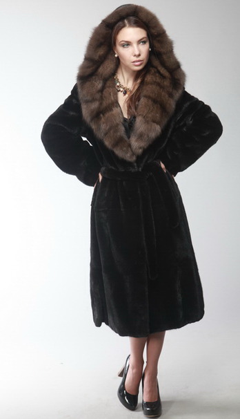 Великолепное пальто из норки BlackGlama c огромным капюшоном из самого дорогого вида русского соболя - баргузина. Это выбор тех, кто не привык к компромиссам.