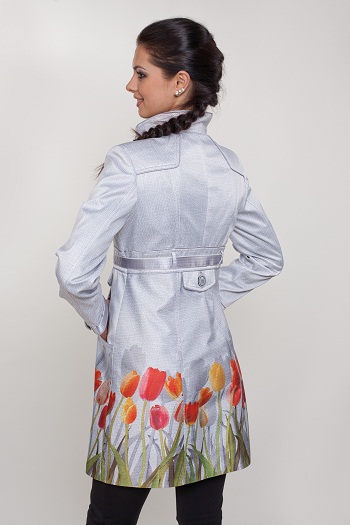Увидев вас в этом плаще, украшенном великолепными тюльпанами понизу, любой мужчина сочтет за честь уберечь нежный цветок от дождя и непогоды.