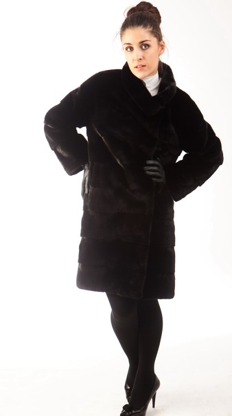 Потрясающий фасон - слегка зауженный книзу силуэт, приспущенное плечо. Эта модель с длинным рукавом. Высокая асимметричная стойка-лодочка. Асимметричный запАх с застежкой на крючки. Шубка без пояса, но изумительно смотрится с широким кожаным ремнем (его можно приобрести дополнительно). К тому же подобные модели не только эффектны и актуальны, но и очень комфортны и великолепно скрывают многие погрешности фигуры. Длина шубы 101см