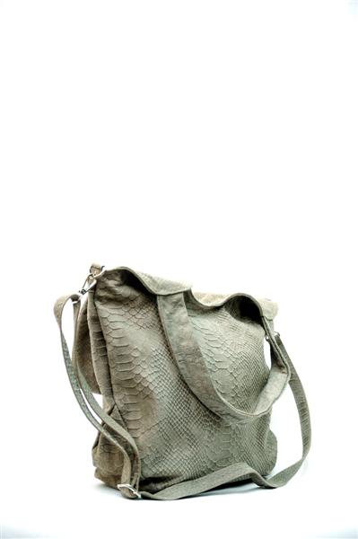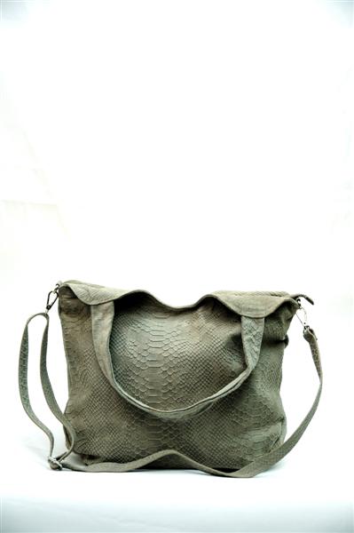 Большая сумка, созданная из натуральной кожи, напоминающая чешую змеи, будет отлично смотреться в зимнее или осеннее время года. В силу своих размеров, она позволит носить с собой всё, что угодно. При этом лучше всего она будет сочетаться с сапогами или глубокими ботинками.