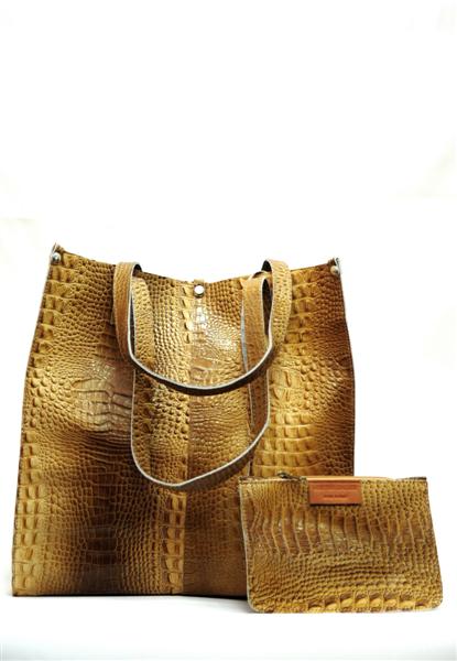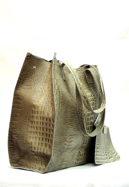 Стильная кожаная сумка, которая имеет внешний вид – кожу рептилии, привлечет внимание всех модниц. Помимо молнии, на которую застёгивается сумка, посередине имеется одна металлическая заклёпка. Благодаря ней, сумка приобретает совсем другой вид. С боку висит вместительный кошелёк, в который можно положить телефон или ключи от дома.