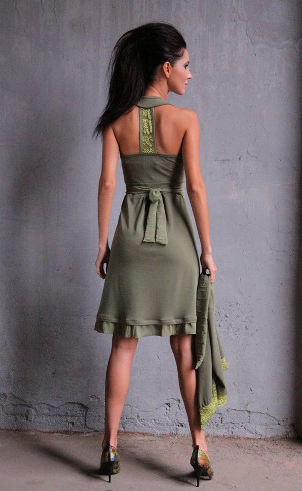 Элегантное платье без рукавов модного оливкового оттенка – необходимое дополнение к Вашему гардеробу. И не только ввиду его универсальности, хотя оно одинаково эффектно будет смотреться и во время отдыха, и в офисе, и на модной вечеринке. Его простой и даже классический покрой, украшенный стильными деталями, всегда будет свидетельствовать об изысканном вкусе своей хозяйки и ее умении сочетать его с последними модными тенденциями.