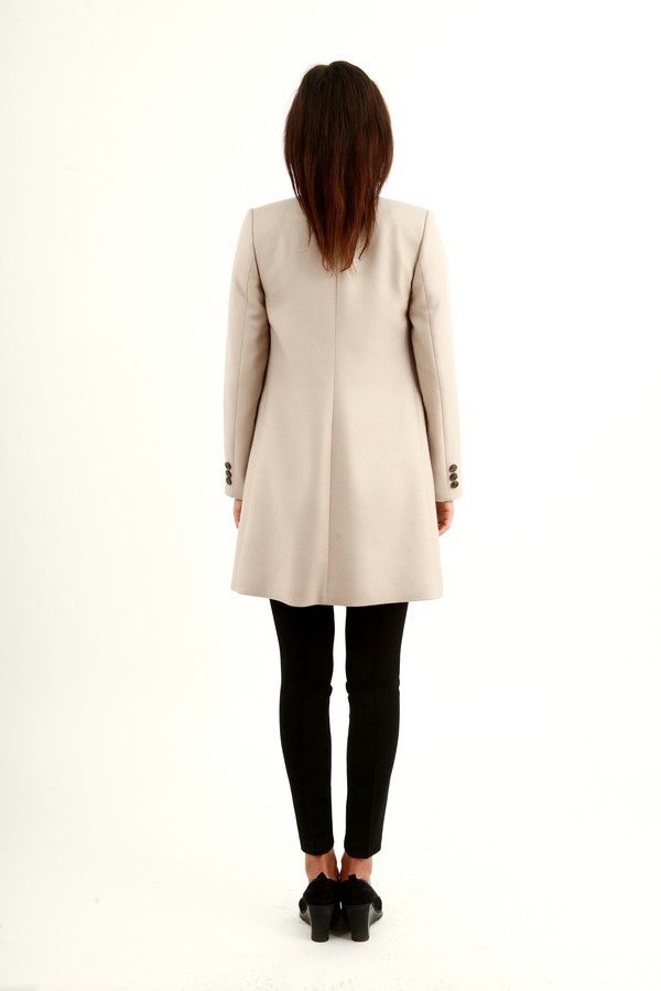 Бежевое прямое пальто, идущее строго по фигуре, чрезвычайно нежно и красиво смотрится на любой девушке! Два ряда чёрных пуговиц, контрастирующих с общим фоном, придают обладательнице этой вещи стройность и визуально «выравнивают» осанку.