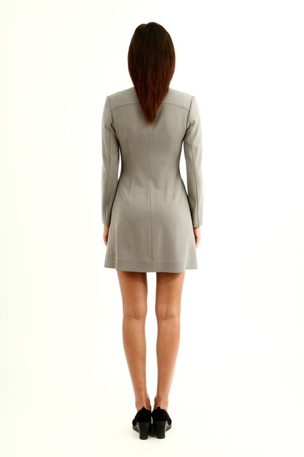 Миниатюрное серое платье, выполненное по необычным эскизам талантливого дизайнера, обогатит гардероб любой модницы. Вырез горловины позволяет сделать это платье строгим , но благодаря складкам на подоле и умеренной длине, это платье смотрится необычно, стильно, и гармонично.