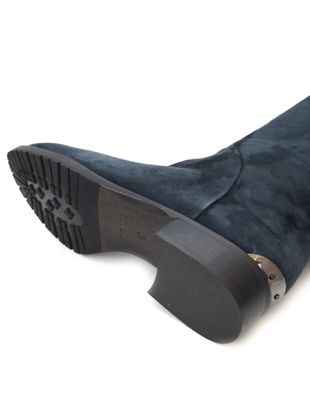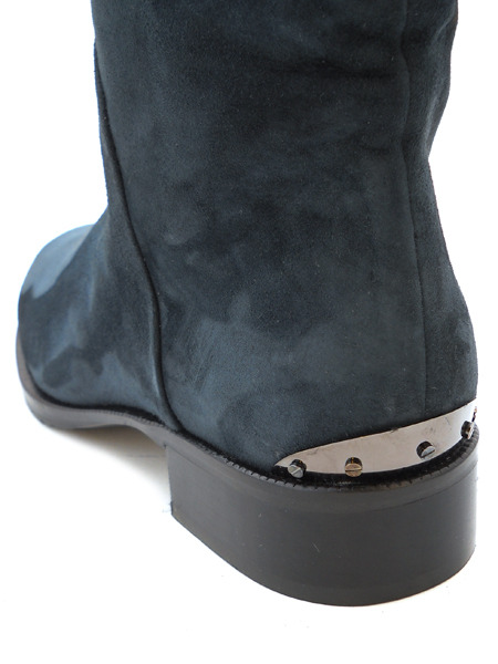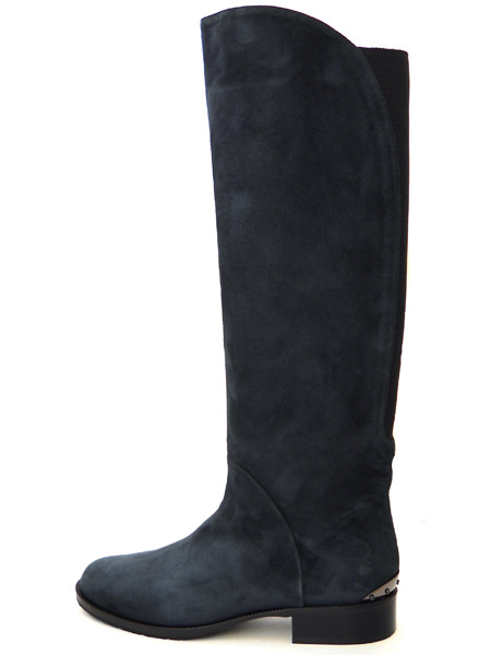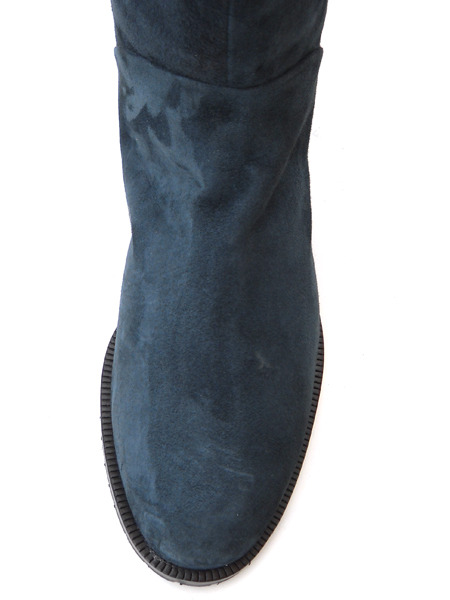 Для тех кто хочет купить одновременно стильные и качественные сапоги предлагается эта модель из замши глубокого темно-синего оттенка с вставкой на голенище.