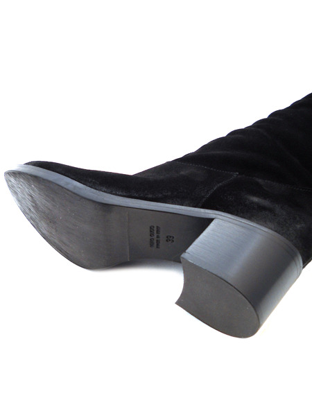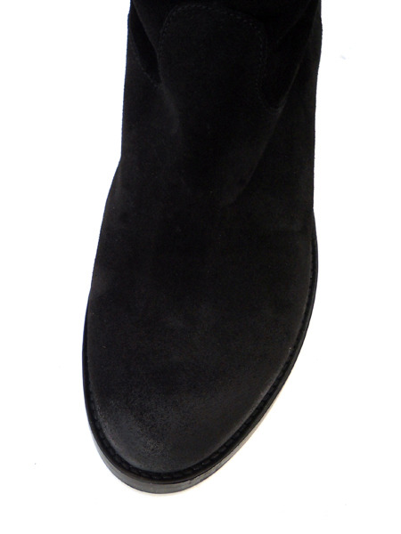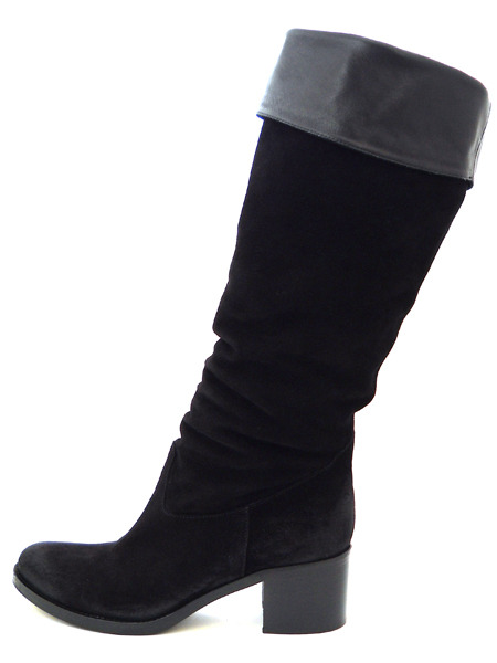Замшевые сапоги черного цвета с присборенным голенищем дополнят Ваш образ и сделают его еще женственнее и элегантнее.