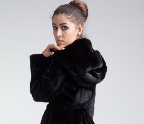 Шуба создана из роскошного меха BlackGlama, густота и красота которого придает ей эффектный и дорогой внешний вид.