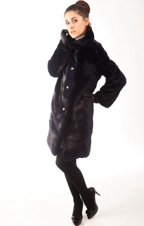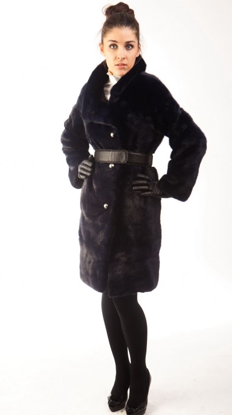 Удивительная по красоте и изяществу шуба от Anna Zotoff выполнена из драгоценного вида норки Navy Blue, которая отличается своим уникальным цветом, достигнутым дизайнерским тонированием и играющим разными красками: от королевского синего до насыщенного черного.