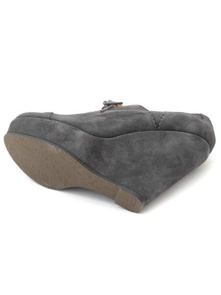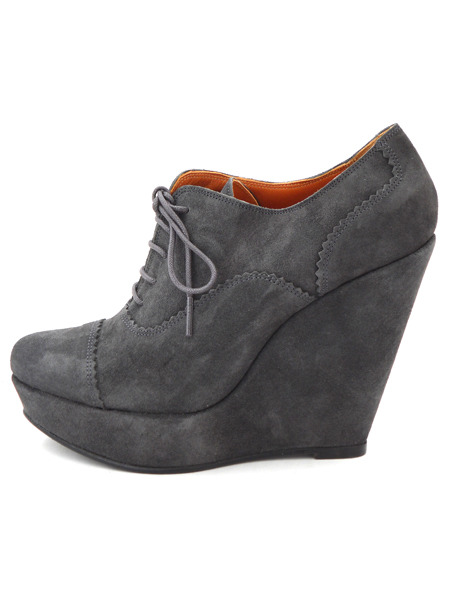 Танкетка обтянута также серой замней, а высота каблука составляет 12 см.