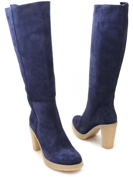 Сапоги выполнены из натуральной синей замши, подкладка изготовлена из натуральной