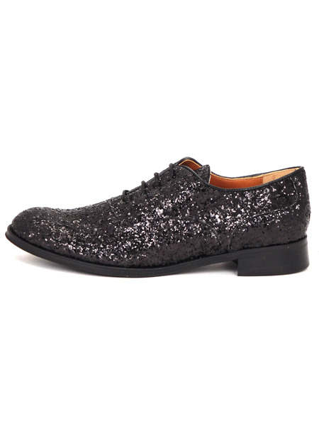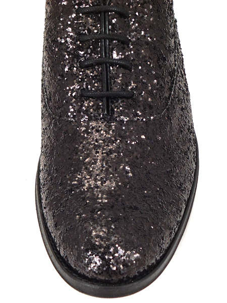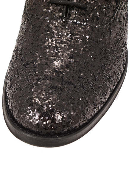 В такой обуви Вы никогда не останетесь незамеченными. Любые мероприятия, вечеринки и шоу станут для Вас самым лучшим местом, ведь именно там будут любоваться потрясающими черными клубными оксфордами из мерцающего глиттера, которые будут только на Вас!