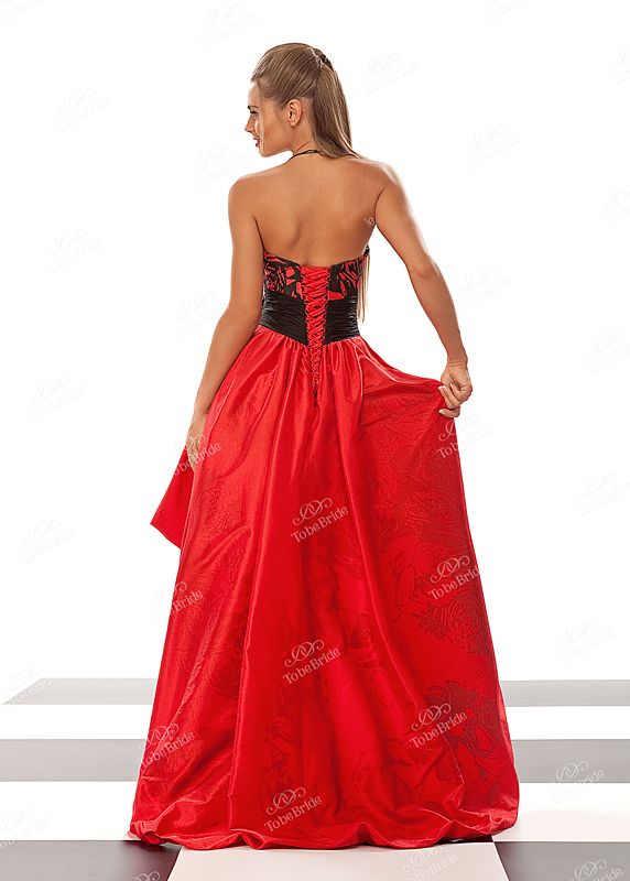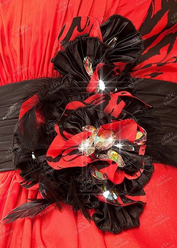 Невероятно эмоциональное вечернее платье с эффектным цветовым сочетанием красного и черного придаст яркое настроение Вашему выходу. Экстравагантная юбка-колокол с ассиметричной линией низа – короткая спереди и изящно длинная сзади придает модели необыкновенную экспрессию, которая, в свою очередь подчеркивает смелость и одиозность стиля своей обладательницы. Необычная юбка, драпировка на лифе, который открывает глубокое декольте, изящный пояс, ярко декорированный цветком из лент и украшенный брошью… в этом платье каждая деталь в крое имеет свой особый шарм.