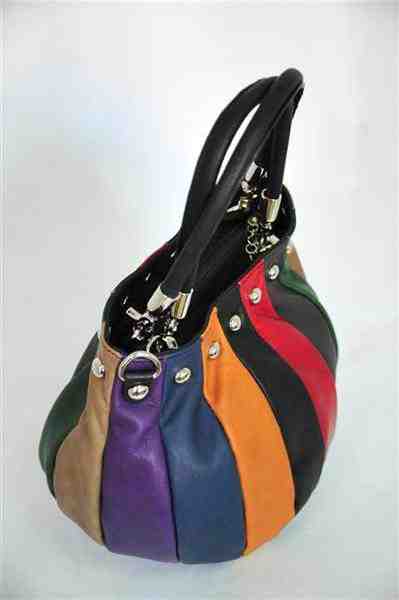 Сумка-мешок изготовлена из натуральной ножи, сумка отделана частями разных цветов, а также имеет декор в виде металлических шариков. Ручки сумки короткие удобные, но если Вам хочется поменять Ваш образ, Вы можете воспользоваться длинным ремешком, который идет в комплекте с сумкой.