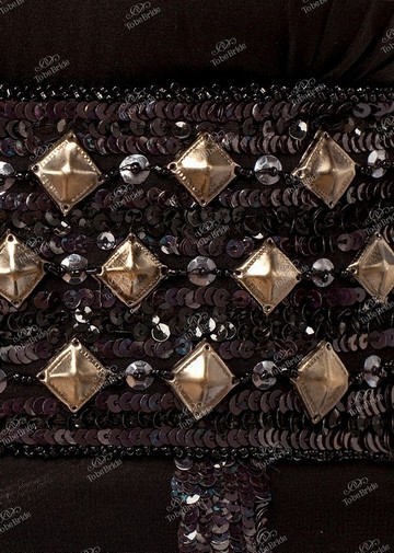 Юбка прямая, немного свободная. Длина платья – по щиколотку. Верхний слой юбки – лёгкая, «летящая» ткань, украшенная узорами из пайеток. Платье отлично смотрится на девушках с любым типом фигуры. Классический вечерний наряд, который во все времена будет смотреться красиво.