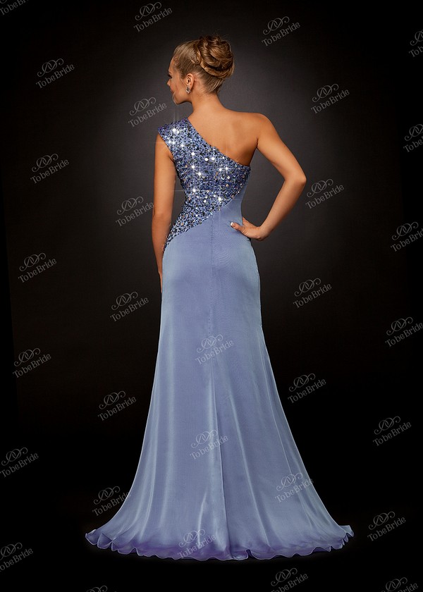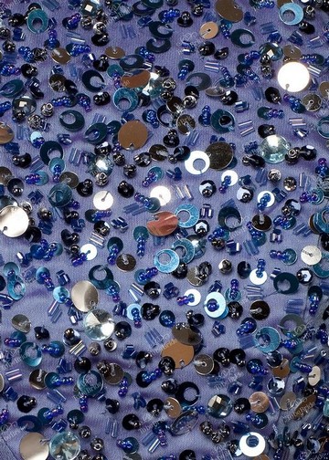 Оригинальное элегантное платье, выполненное из натурального шёлка, украшено многочисленными пайетками. Корсет словно состоит из двух частей – правая часть украшена драпировками, а левая часть – вышивками из пайеток.