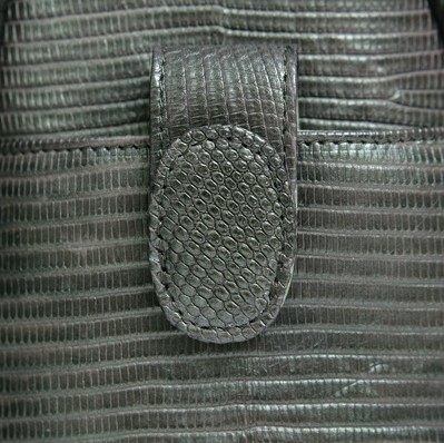 Привлекает внимание интересная интерпретация коротких тонких ручек, которые продолжаются в виде диагональных боковых кантов, между которыми прячется декоративный карманчик с красивой застежкой-замочком.