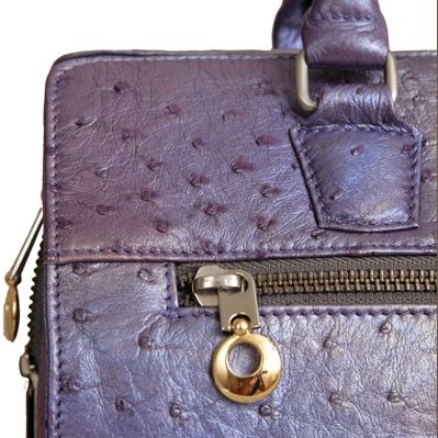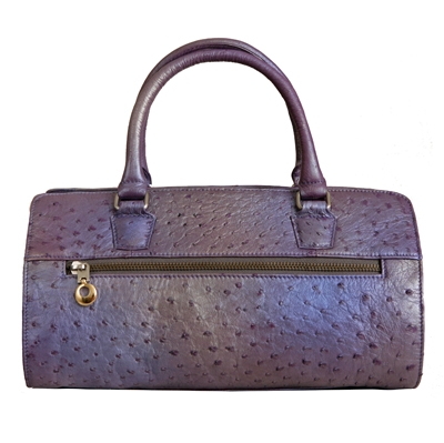 Фактура натуральной кожи страуса сама по себе настолько оригинальна, что изделиям из нее не требуется дополнительных украшений. Это в полной мере относится и к небольшой удобной дамской сумочке, выполненной в интересном сиреневом оттенке с золотистым оттенком, которому искусно придали состаренный вид.