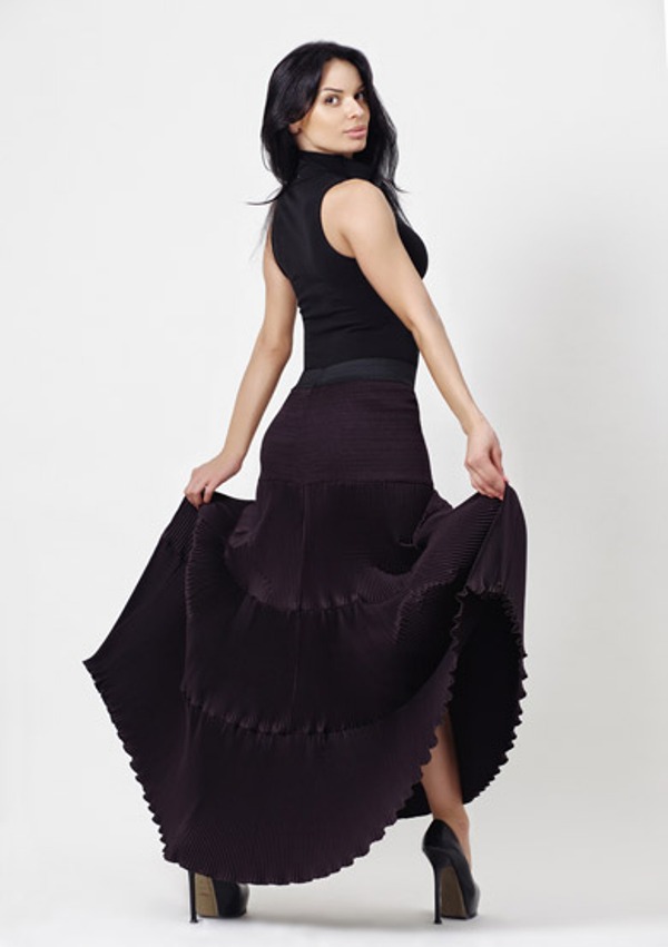 Строгая макси-длина и соблазнительнительный рельеф плиссированной ткани приковывают взгляды. Союз практичного дизайнера и художника-футуриста воплощён в этой восхитительной модели.